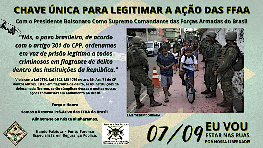 The people will take to the streets to demand the removal of all those who have harmed the country: "The 9 ministers of the Federal Supreme Court (STF), many state and federal senators and deputies and political parties that do everything to sell our lands, our country and our people to the socialist and communist system."